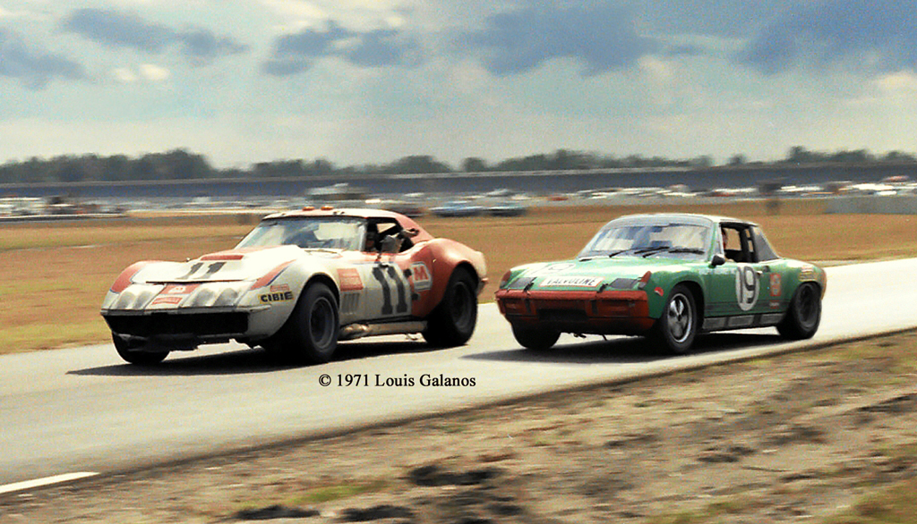 The photo above shows the then leading NART Ferrari 512S of Tony Adamowicz and Ronnie Bucknum as it brakes for turn three at Daytona. The flames belching from the exhaust were caused by broken valve springs. Ronnie Bucknum admitted to Tony Adamowicz many years later that he had been running the car at higher RPM’s that he should have and that caused the broken valve springs. As a result they had to slow the car down to save it for the finish. If not for that they could have won the race. “Close, but no cigar.”